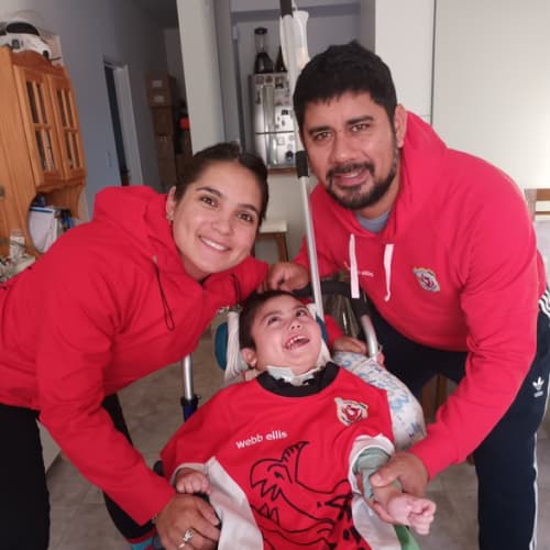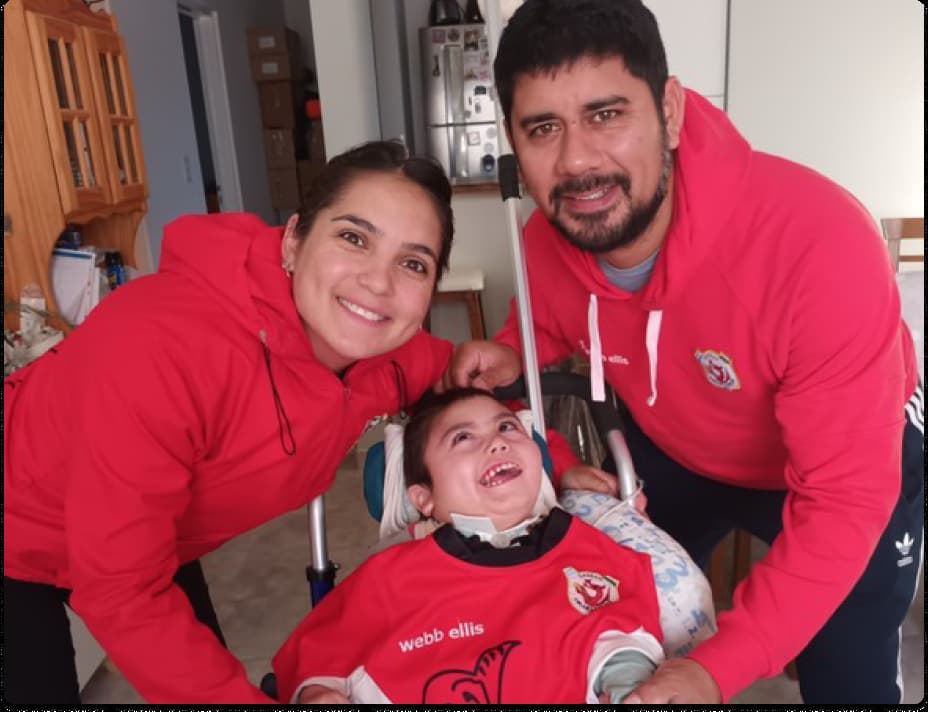 Somos Florencia y Renzo, papás de Ginés (4), quien nació el 26 de febrero del 2020, y junto a nuestro perro, Baco, vivimos en la localidad de Gaiman, provincia de Chubut. En enero del 2021, luego de una internación en el hospital Italiano de Buenos Aires, Ginés fue diagnosticado con una mutación en el gen Cask.