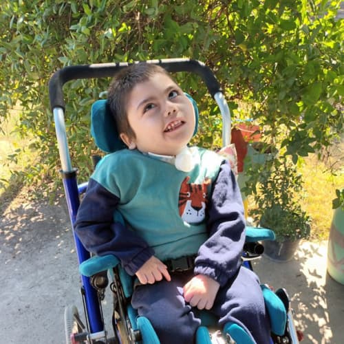En la actualidad, Ginés se alimenta mediante un botón gástrico y también tiene traqueostomía. A pesar de sus espasmos (casi a diario), su hipotonía y su poca visión, él asiste al jardín de infantes, a salita de 4 años, con su seño y un grupo maravilloso de niños. En casa contamos con el acompañamiento de enfermeras que lo cuidan y lo miman mucho. También cuenta con un grupo de profesionales increíbles como su fonoaudióloga, kinesiólogos, terapista ocupacional, músico terapeuta y estimuladora visual.