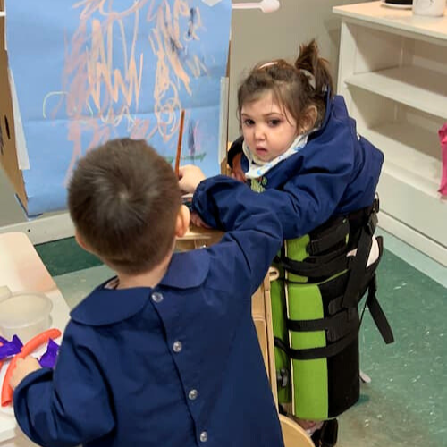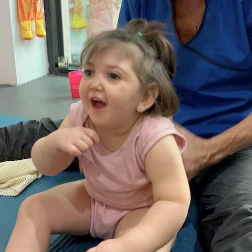 Máxima va a un jardín de infantes dos veces por semana ¡y lo disfruta muchísimo! También le encanta jugar con sus hermanas y es muy mimada. Actualmente, tiene entre 2 y 3 terapias por día (estimulación visual, terapia ocupacional, fonoaudiología, estimulación auditiva, kinesiología en neuro desarrollo, kinesiología motora -método Cuevas- y musicoterapia).