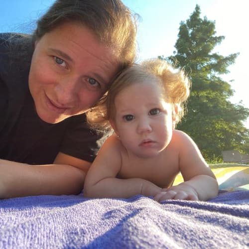 Suri nació el 8 de enero del 2020, con 36 semanas ya que me habían detectado un RCI (retraso de crecimiento intrauterino). Nació con 2,100kg y bajó a 1,800kg, por lo que quedó internada en neo por bajo peso, y recién a los 20 días nos fuimos a casa.